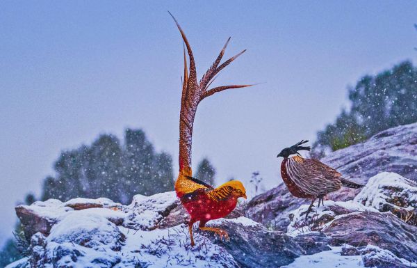 风雪双骄,红腹锦鸡&勺鸡,汤民钢 摄