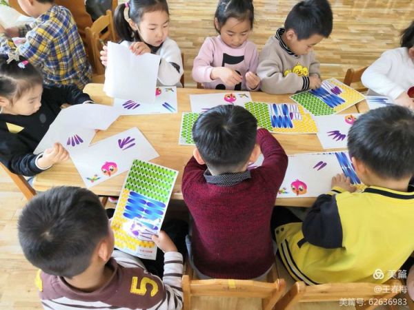 孩子们仔细的粘贴不同色彩的鸟儿羽毛,看孩子们多认真啊!