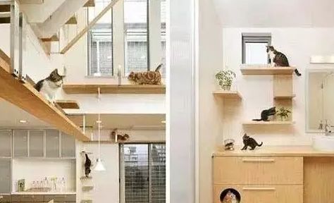 4.各种桌面/台面尽量不要放置摆件(但这个要分猫,有的猫不管什么都要拨弄下去)5.可以设置了一个步步高猫爬架。可以给好几只猫提供同时睡觉还不互相打扰的地方。然后和这个猫爬架相连的是一整面墙的猫跳台.【点击了解店铺最新活动】