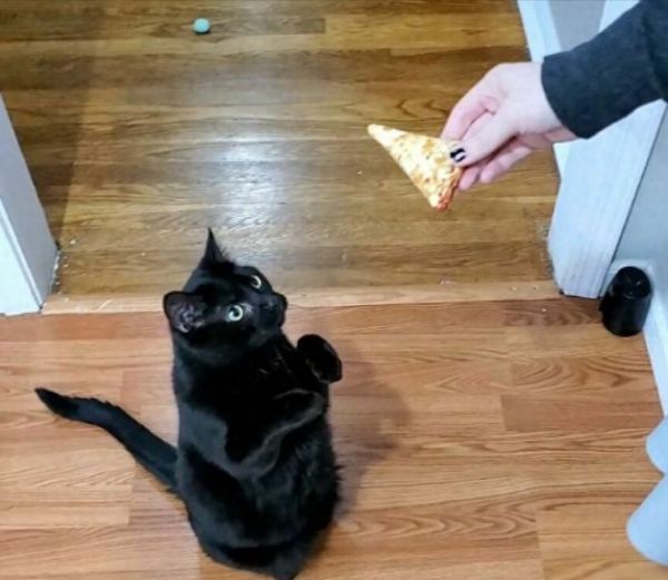 每次当我给猫咪喂零食的时候,它总是摆出招财猫的姿势,然后等待我把零食扔给它。