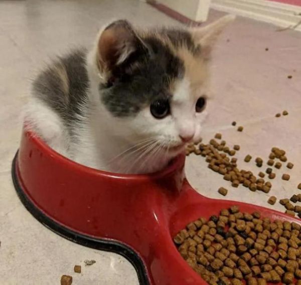 虽然我已经教过猫咪如何吃饭,但它仍然喜欢在饭盆中睡觉。它那呆萌的眼神真是可爱极了。