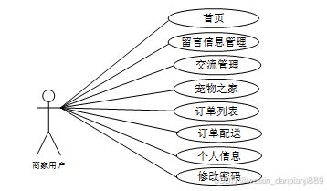 按照宠物之家管理系统的角色,我划分为了用户模块、商家模块及管理员管理模块这三大部分。