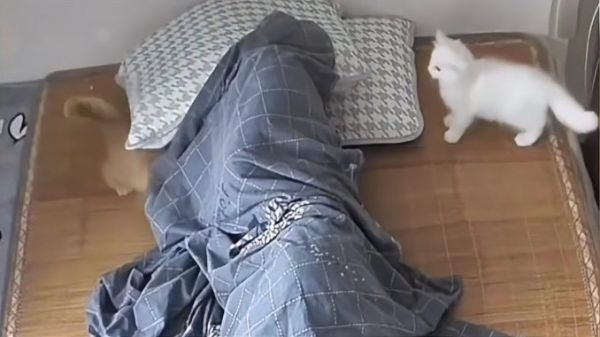男子还在睡觉,猫猫已经开始跑酷了!网友:这么活泼送去上学吧