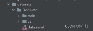 图片数据的存放格式如下,在项目目录中新建datasets目录,同时将跌倒检测的图片分为训练集与验证集放入DogData目录下。