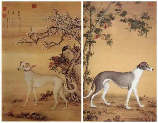 (来自清朝中国宫廷画师郎世宁所作《十骏犬图》)