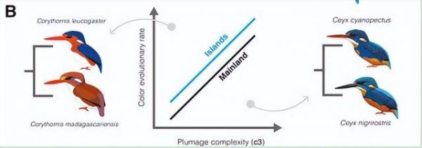 与更简单、均匀的羽毛相比,复杂的羽毛图案能够更快地实现颜色进化,岛屿的殖民化与羽毛的复杂性无关,导致物种之间颜色的进一步差异,更广泛地说,这些结果突出了潜在的关键创新(即羽毛复杂性)与鸟类异域物种形成的地理机会之间的相互作用。