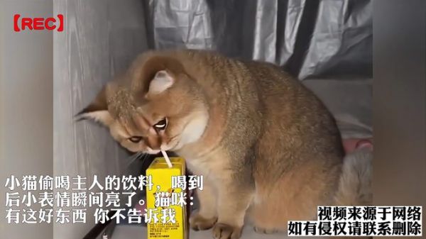 小猫偷喝主人的饮料,喝到后小表情瞬间亮了。猫咪:有这好东西