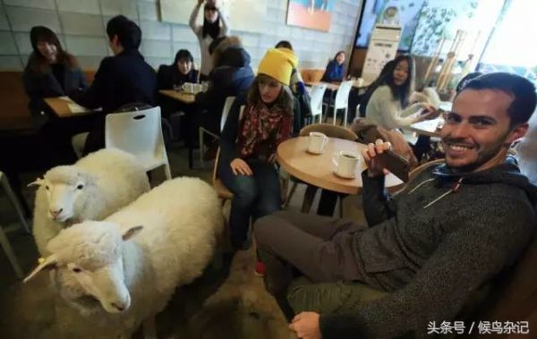 去年韩国首尔,一咖啡馆特意请来了招财神器——两只绵羊。两只绵羊游走在餐桌之间,会时不时向你卖个萌,你可以一边喝咖啡一边与绵羊玩耍。除此之外,如果你属羊,还可以享受10%的价格优惠。