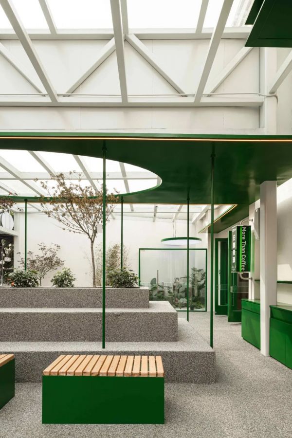 “绿色站台”的概念 摄影:李恒本案通过“宠物休息站”的品牌理念输出,向社区传递了友好的邀请信号:任何人都可以带着自己的宠物来到这里交流。设计团队希望通过舒适清新的公共空间,在商业以外融入更多人文关怀,拉近心灵之间的距离。