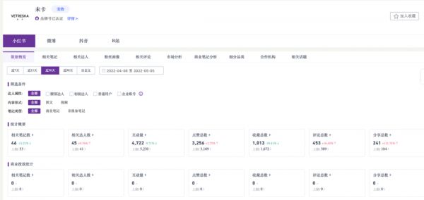 拉取“未卡”近30天在小红书大数据情况,发文46篇,同比上期下降了13%。