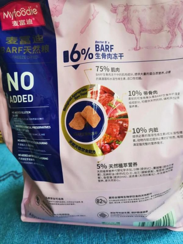 麦富迪barf猫粮0谷物、0防腐剂、0着色剂、0化学诱食剂,彰显健康本色。
