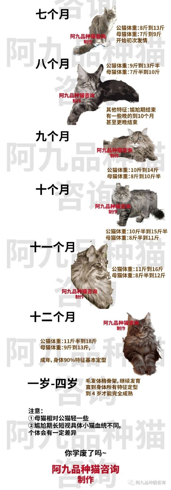 缅因每个阶段都有对应的标准体重和体型以及特征。
