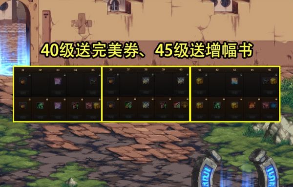 在31~45级的奖励中,35级和45级分别送了耀银品级调整箱,37级直接送5张属性成长券、40级送完美成长券,45级送一本增幅书。值得注意的是,白送的金绿柱石礼盒为10个,通行证的金绿柱石礼盒含100个,也就是说31~45级送720个金绿柱石。