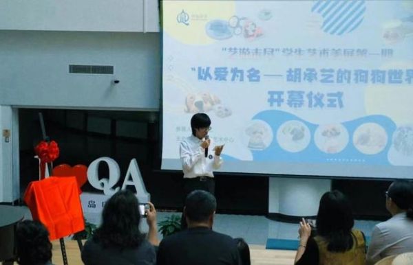 日前,一场名为“以爱为名——胡承艺的狗狗世界”的画展在青岛中学思沉广场举行,小艺术家胡承艺将自己创作的以狗为主题的30幅画作进行了展览、义卖,并将所得善款全部捐给了青岛市儿童福利院。