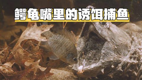 00:30鳄龟在水里发现小鱼后,慢慢的张开了大嘴,用舌尖上的诱饵来吸引