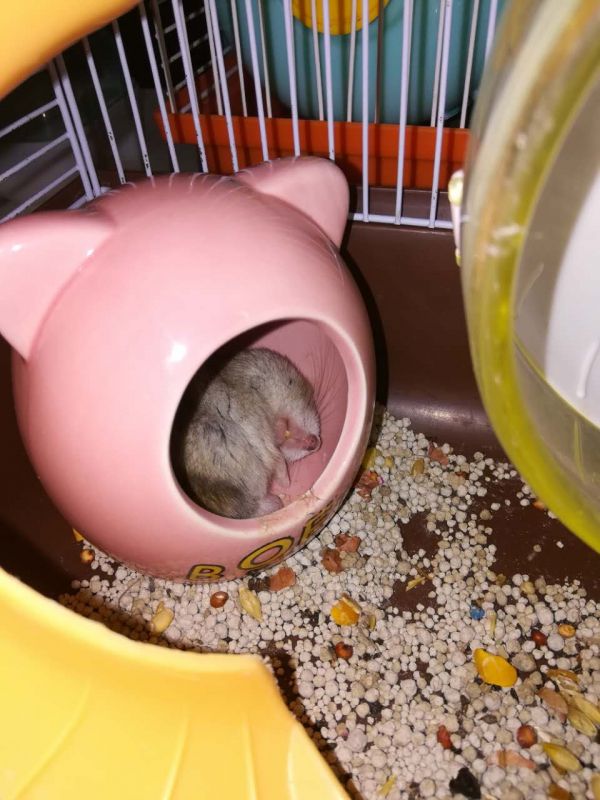 变老后的仓鼠基本一天24H都在睡觉,能少打扰它就少打扰它,白天太亮了,记得用块纸皮给他们挡下光。如果恰巧仓鼠醒来吃东西和喝水了,可以抓他出来洗个澡玩下沙子,偶尔也要逗下它,或者放他出来在桌子上爬爬,运动一下。