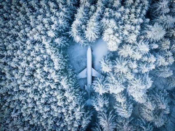 在美国俄勒冈州的一个大雪夜后拍下的这张照片,发现一架隐藏在森林里的飞机。
