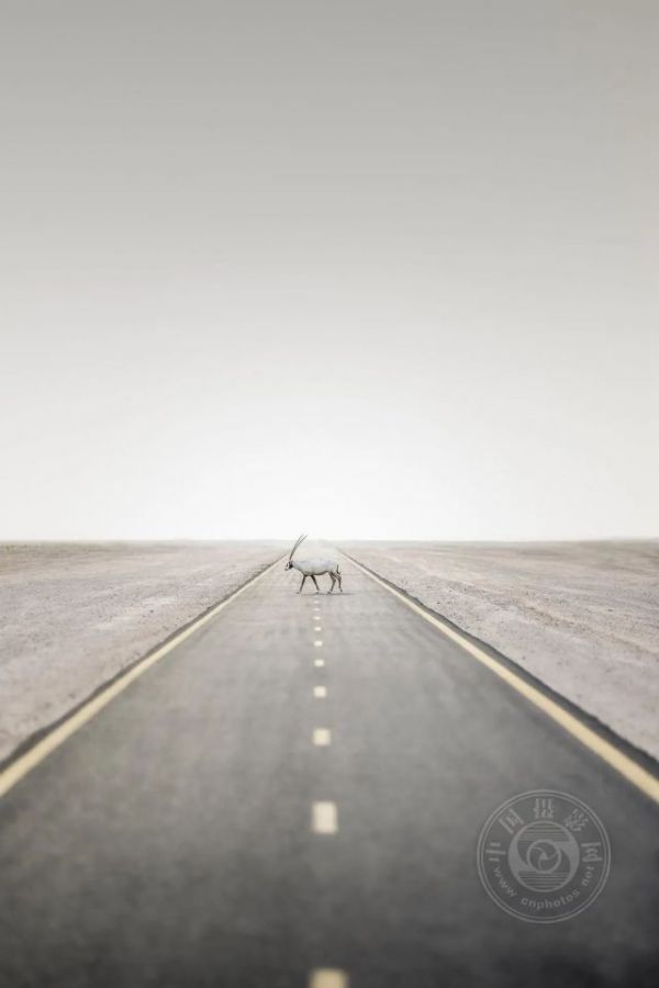 阿联酋沙漠中,一只落单的雌性羚羊穿过马路。过了一会儿,又有两个人跟着她走过,让我得到了第二帧场景。