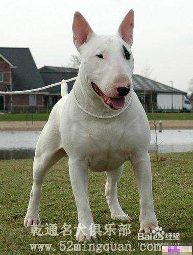 浏览:5324|更新:2017-01-24 03:09牛头梗,体高:48-56厘米,体重:18-22公斤左右。原产地英国,起源于十九世纪。此犬因体型不同分为标准型和迷你型两种。是人们用斗牛犬与老式英国梗犬交配、混血而培育成的战斗犬。牛头梗具有圆而有力的身体,厚实的胸颈,背部短直,头部比例略长没有明显鼻梁,吻部强壮有力,耳朵小呈尖型,眼睛呈三角形眼球为黑色或棕色。牛头梗相对人来说性格还是比较温顺、聪明听话,对主人忠心而且服从性强,对儿童特别和善友好,亲切耐心,如照顾得当,可成为忠实的家庭守卫犬。