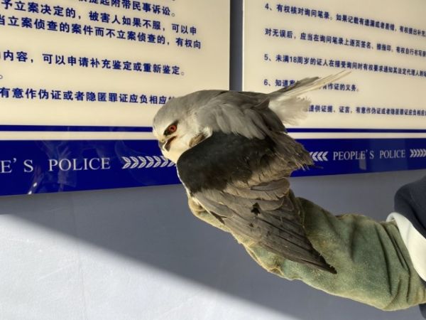 国家二级保护动物黑翅鸢折翼 城阳警民携手救护