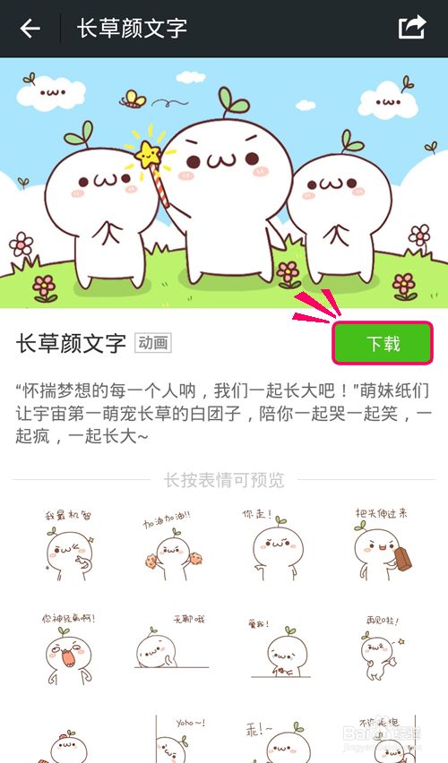 点击选择需要添加投稿表情,手机上没有表情包.因此需要点击[下载]到本地