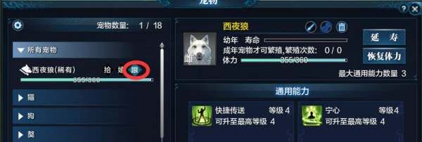 2、打开宠物界面后,先确认宠物是否死亡,如果不是死亡状态那么就可以把宠物召唤出来跟随!如果宠物是死亡状态,那么就不能召唤它出来,更不能跟随了。