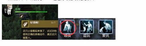 当小喵头上出现想玩的表情提示,就可以选中它,选择调戏,如果成功会有心型提示