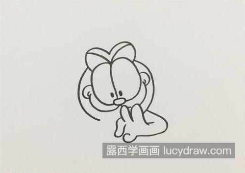 2 步骤二:在加菲猫的头部描绘出他可爱的眉毛,眉毛的形状类似心形,随后用圆形勾勒出他的脸部轮廓。加菲猫的手指相互交叠。