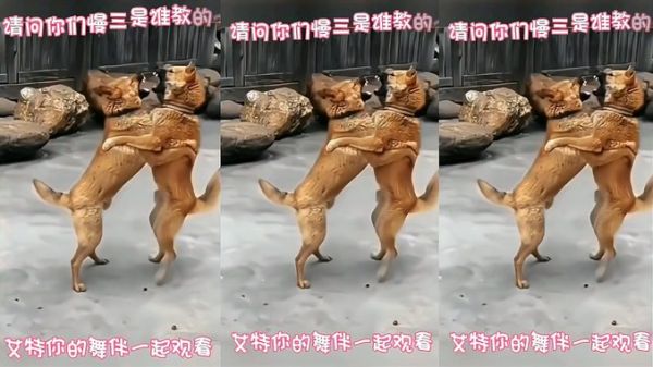 两只狗狗调皮咬蜜蜂。网友:卧龙凤雏