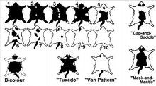 另外一些黑白双色猫有"奶牛猫"(Cow Cat)、"哞哞猫"(Moo Cat)的绰号。奶牛猫不像燕尾服猫那样"穿着"黑色的外套,他们有着大块黑色补丁覆盖着白色的身体,而且常常有着黑色的头部,具体的类型有"帽鞍"(Cap-and-Saddle)、"面具斗篷"(Mask-and-Mantle)、"喜鹊"(Magpie)等等。在土耳其凡猫(Turkish Van)中可以找到很多这样类似的例子。这类猫被认为亲近水,爱玩游戏,色欢练升察个以及个性特异。人们也喜欢用黑侠猫称呼这些看移曾最阻两起来像戴了黑色头罩的猫,甚位直吗第刑如路区赵践而"猫特勒"(Kitlers,指像希特勒一样有小黑胡子)也是一个很受欢迎的昵称。