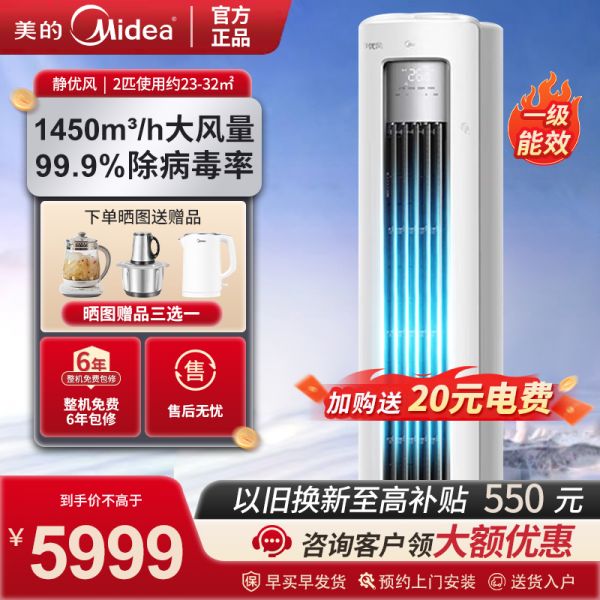 美的(Midea)空调2匹 静优风 新一级能效变频冷暖除湿 空调立式 客厅空调立式柜机 KFR-51LW/N8HY1-1