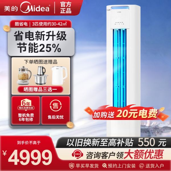 美的(Midea)空调 2匹 酷省电新能效变频冷暖 空调立式 客厅空调柜机 云朵系列 KFR-51LW/N8KS1-3P