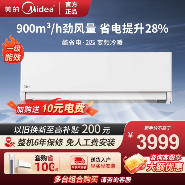 美的酷省电空调家用一级能效卧室2匹官方变频冷暖正品挂机两用壁挂式省电节能客厅
