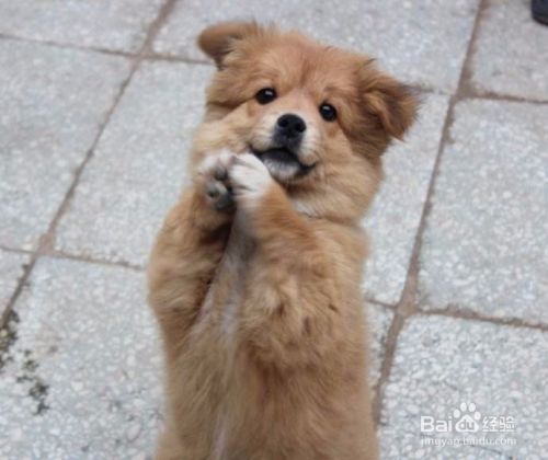 狗狗刚开始站起来的时候我们先不要马上给它食物,看看它能不能站得更加直、更加久一点,这时候狗狗为了保持平衡,就会开始做出拜年或道谢的预备动作。