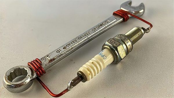 家里的破烂扳手,和火花塞给组装一下,轻松发电点亮灯泡