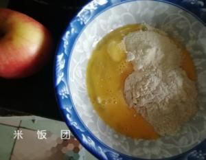 取一碗加入羊奶粉1勺、蛋白粉1小勺(可不加)玉米面粉50g。打入一颗鸡蛋,可加少许盐。