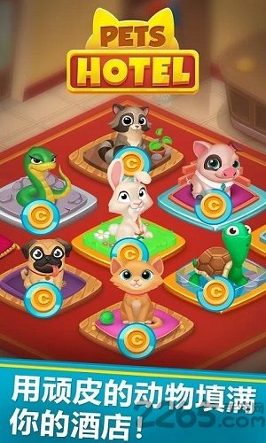 在游戏里邀请有趣的宠物客人住在这儿,从而赚钱升级你的酒店!让最可爱最淘气的动物充满你的宠物酒店哦!你将要照顾好多种类的可爱动物,比如猫、狗、老鼠和大熊等各个宠物。你也可以邀请你的朋友作为网红博主访问你的酒店,你们还在等什么呢?