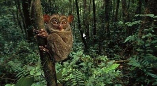 8、邦加眼镜猴:邦加的眼镜猴每只眼睛比它的大脑还大,这种超小灵长类动物的大眼睛是自然界最古怪的夜视镜,它的巨大的脚和有力的后腿意味着它能从一棵树跳跃到另一棵树,寻找昆虫和小型无脊椎动物吃。