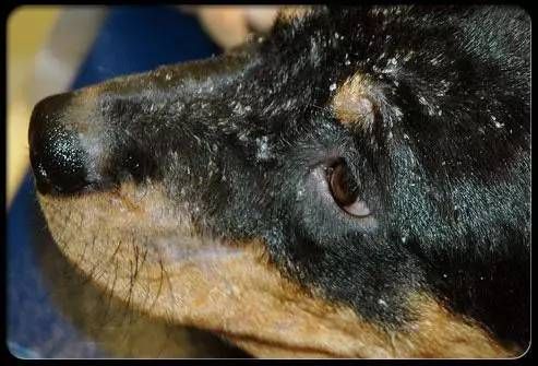 1.被毛中散有灰白色或银色干鳞屑,脱毛较轻