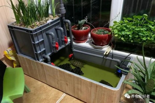 当然,也有的龟友不喜欢换水,或者是对水质的要求很高,而且更喜欢有绿色植物的点缀,有点生态环境的样子更有意境。这样更接近自然的环境当然是能把龟养好的,只是前期自己得多投入点时间和精力去应对了。