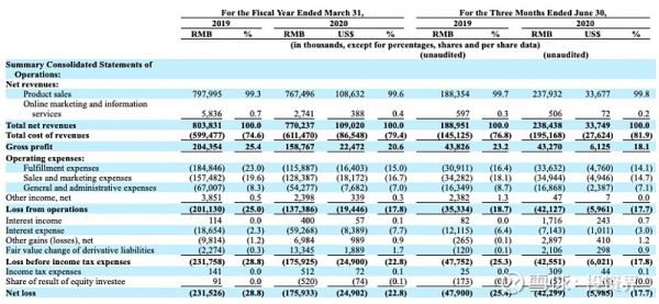 招股书显示,波奇宠物2020财年(2019年4月-2020年3月),波奇宠物GMV为15.6亿元人民币,营收为7.7亿元人民币。2021财年一季度(2020年4月-2020年6月),波奇宠物GMV为5.54亿元人民币,较上年同期增长56%,营收为2.4亿元元人民币,较上年同期增长约30%。