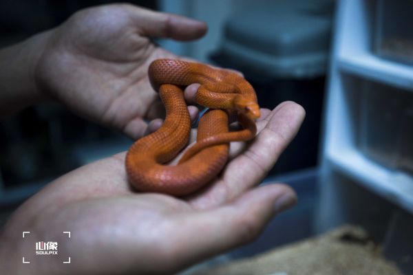 2012年,我养了自己的第一条蛇,品种是白化纳尔逊,后来它趁我不注意就跑掉了。蛇有各种脾气,刚开始养蛇的时候我也会害怕,于是我选择从小蛇开始养,后来渐渐习惯了这种和蛇相处的感觉。大蛇我也养过,几年前我有一只红尾蚺,能长到十多斤、两米多长,后来得知当时它属于国家二级保护动物,我便把它送给了有饲养证的人喂养。