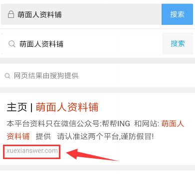 搜狗搜索:萌面人资料铺 认准域名:www.xuexianswer.com 或者域名:xuexianswer.com 点击进入