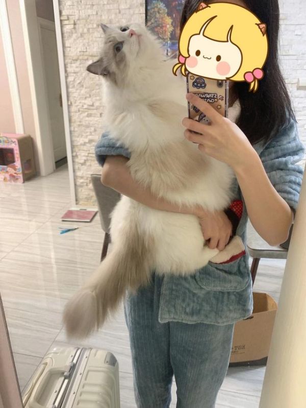 而且纯种布偶猫的尾巴是比较长的,尾巴上都覆盖着蓬松的被毛,摸上去会像软绵绵的布偶一样。