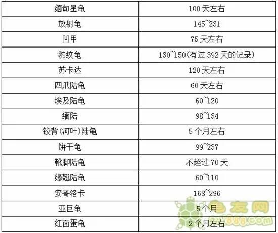龟蛋孵化时间一览表