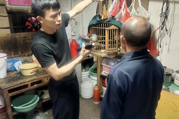 5月9日,丰惠派出所社区民警在辖区企业走访时,听到员工宿舍区传来阵阵清脆悦耳的鸟叫声。民警循声而去,只见院子内悬挂着不少鸟笼,“这不是一般的鸟,而是被欧阳修誉为‘百啭千声’画眉鸟,是国家二级保护动物。”为进一步摸清案情,民警立即开展深入调查。