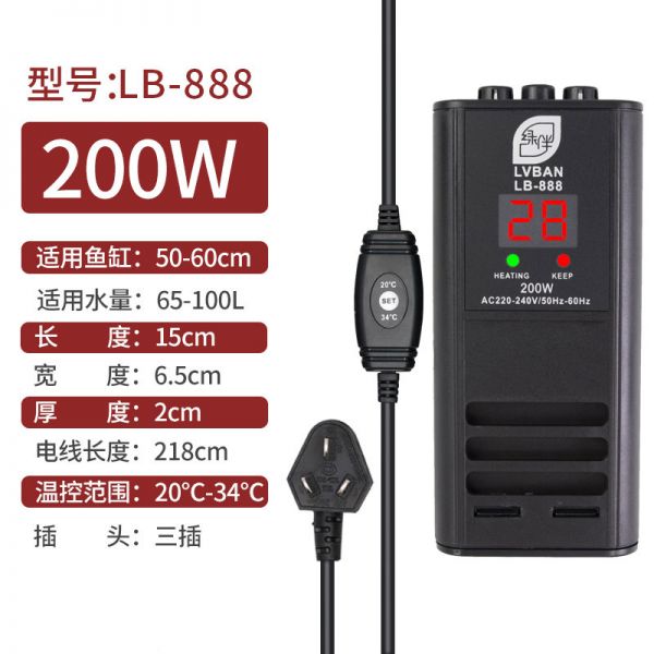 鱼缸恒温器温控自动加热棒200发热控温500w温度300瓦水温1000水箱 默认尺寸 LB-888三插头【200W】