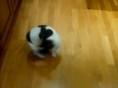 啥意思?就是狗狗一言不合就在他面前“表演”追着自己尾巴转圈,就像这样: