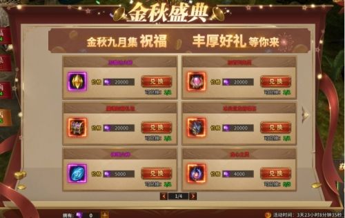活动期间,参与金秋庆典系列活动可获得紫钻。在兑换商店中可使用紫钻兑换珍稀道具