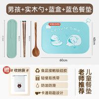 CORN 玉米 儿童筷子勺子收纳盒便携餐具套装实木小学生餐具专用单人三件套 实木男孩+蓝盒+新款蓝色餐垫 ¥65.92元